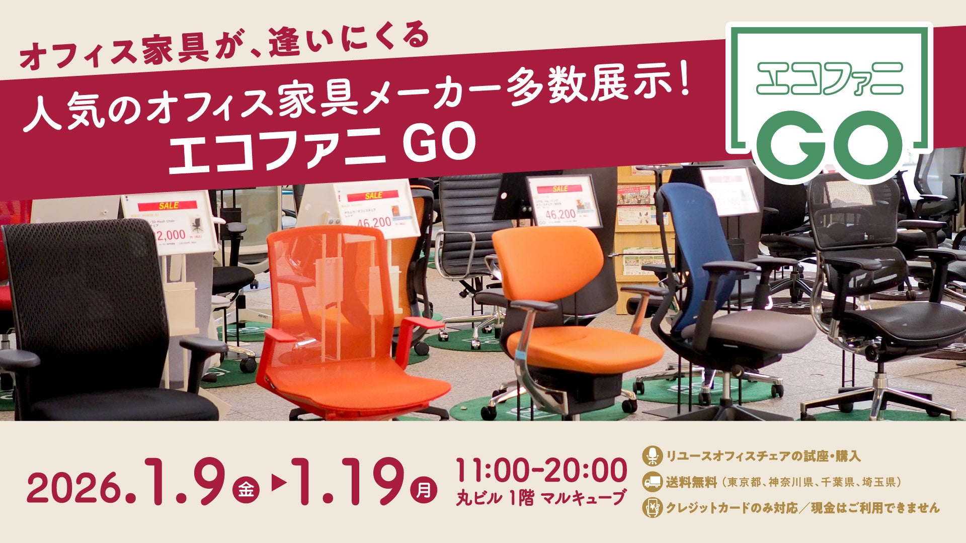 A pop-up Events for reused office Furniture, "Ecofani GO," will be held for 11 days from Fri January 9th to Monday, Mon 19th, 2026, at Maru Cube Marunouchi Bldg. the 1st floor of Maru Building.