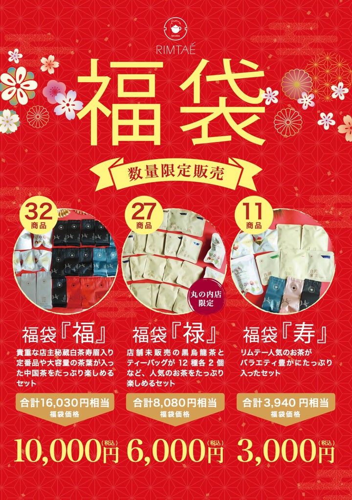 Fuku Lucky Bag "Fuku": A luxurious lucky bag containing large bags of products not usually available and rare white tea (10,000 yen including tax)