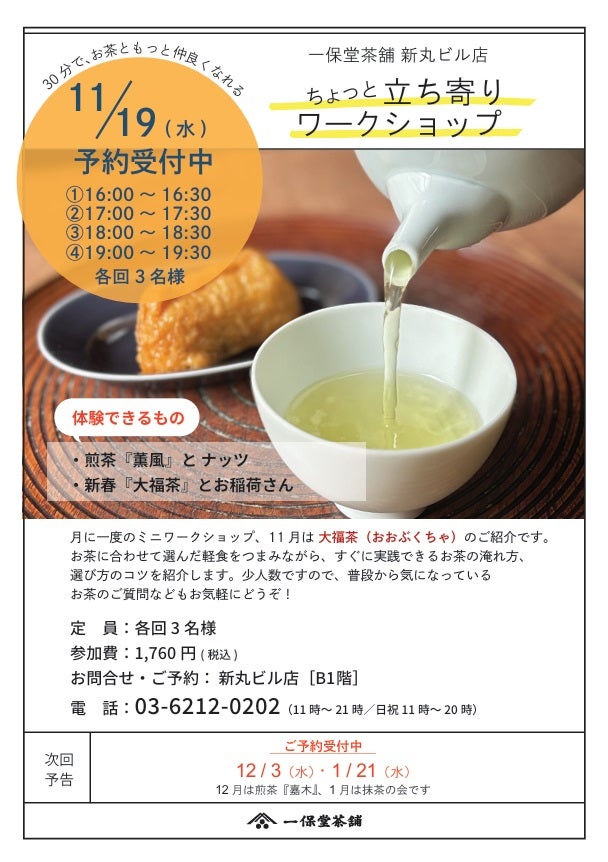 "Get to know tea better in just 30 minutes" is the theme of our monthly mini Shops, and in November we will be introducing Obukucha tea.