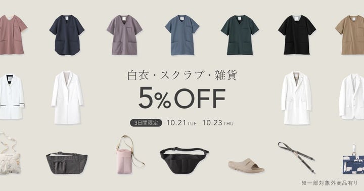 For three days only, starting Tue, October 21st, we will be offering 5% off lab coats, scrubs, and Miscellaneous Goods.