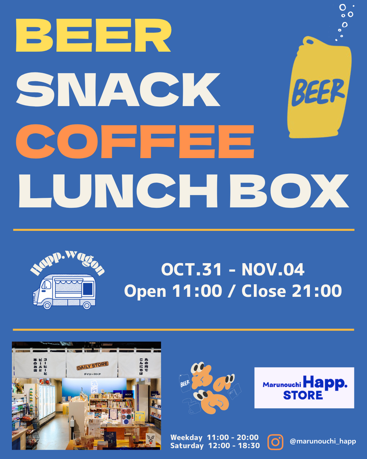 To coincide with the Tokyo International Film Festival, which will be held from Fri October 31st to Tue November 4th, Happ Store's food truck "Happ.Wagon" will be opening in front of Marunouchi Bldg.!