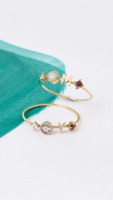 A one-of-a-kind custom-made ring where you can select the natural stone and alphabet in the center of the ring.