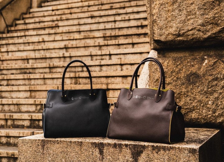 Brightly colored suede peeking out from the edges adds a fresh spice to the clean design.