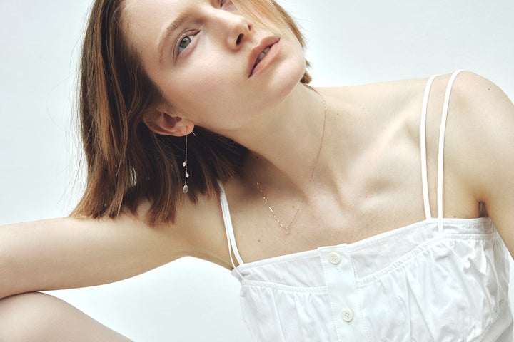 The understated and soft color of rose quartz enhances the beauty of ete's popular mist pink gold.