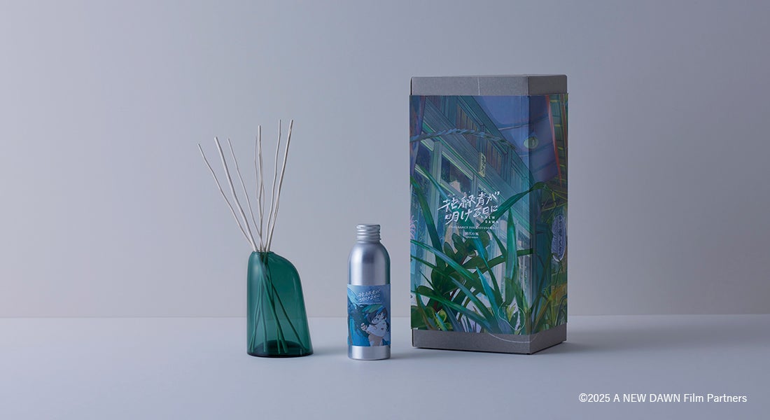 Inspired by the realistic depiction of lush greenery in this animation and the inner conflicts of the protagonists, Kurashi no Kaori has created the diffuser fragrance "Ajiro no Kaze." Enjoy the fragrance that expresses the beauty of everyday life right here and now, along with the work of director Yoshitoshi Shinomiya, who gently weaves together the concrete and the abstract.