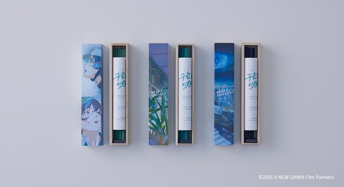 A diffuser with the scent "Ajiro no Kaze" inspired by the film, and "incense" in three original film packaging to match the scent of the incense, will be available for a limited time from Fri February 27th.