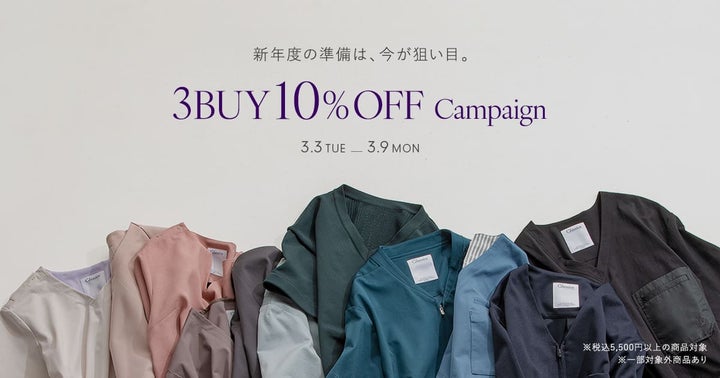 Until Monday, March 9th, purchase 3 or more items worth 5,500 yen or more Mon 10% off We will be holding a great Campaign to help you.