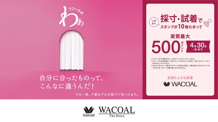 If you get measured and try on clothes Period and Thu April 30th, you'll collect 10 stamps and receive up to 500 Wacoal Member Points!