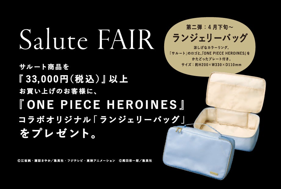 Customers who purchase Salute products totaling 33,000 yen (tax included) or more will receive a free original "ONE PIECE HEROINES" collaboration "Lingerie bag".