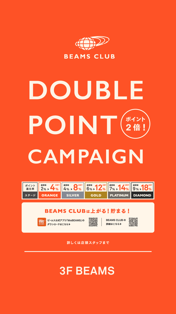 BEAMS SHIN-MARUNOUCHI is holding a double points Campaign to express our gratitude to BEAMS CLUB members.