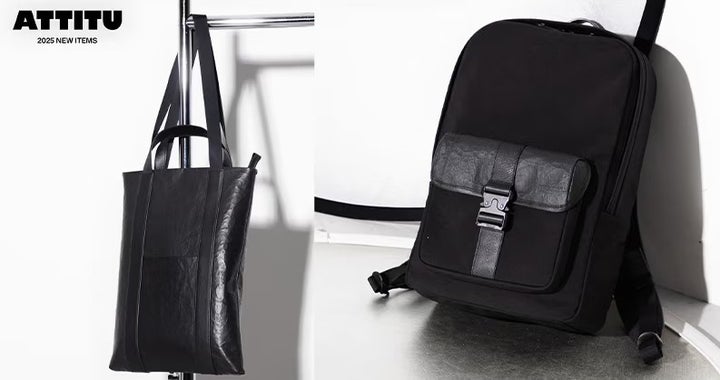 「ATTITU」로부터, 신형 「CORDURA(R)×레더 콤비슬림 백팩」 「발수 레더 2wayPC 토트」의 가방 2형이 등장합니다.