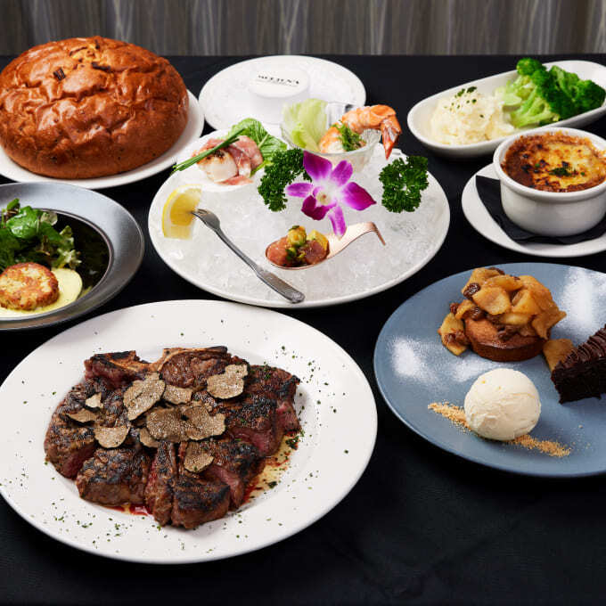 12月22日,23日:通常営業希少部位「ポーターハウス」ステーキにトリュフバターとスライストリュフを添えて贅沢に。フィレ&ロブスターのコースもご用意しております。