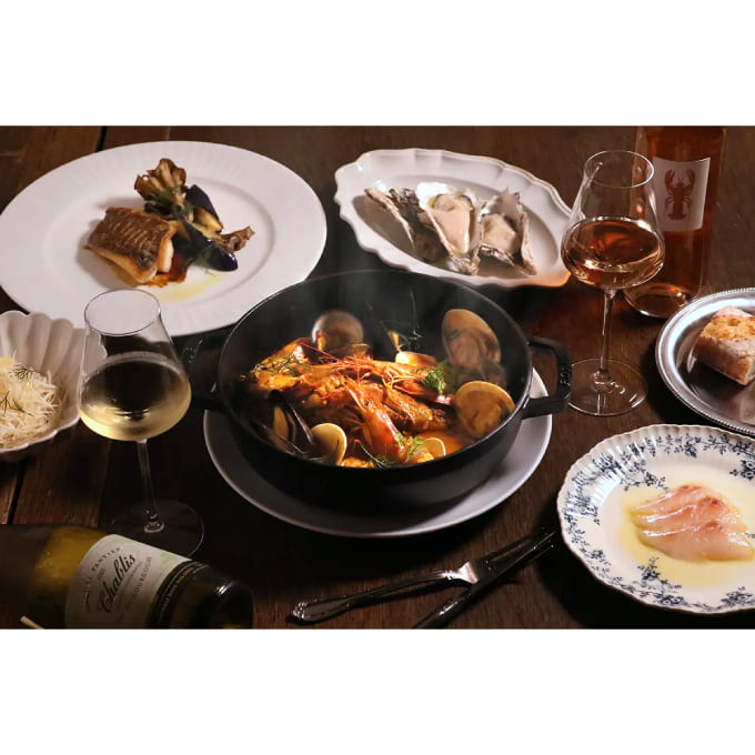 [予約] 当日利用可ビストロ シロの料理は、魚介と旬野菜のみで構成されます。あえて魚だけに焦点を当て、素材の個性を最大限に引き出す熟練の技法と現代的感覚の融合をお楽しみください。