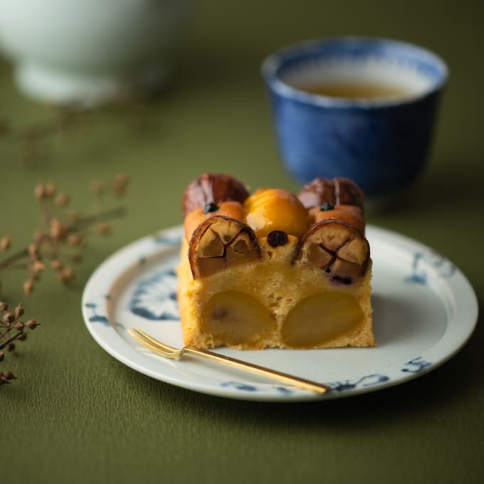 熟成安納芋を練りこみ、熊本県産メープルマロンと渋皮栗13粒を散りばめた蜜芋パウンドケーキ。白砂糖・人工甘味料・保存料を使わず自然な甘みを活かした逸品。