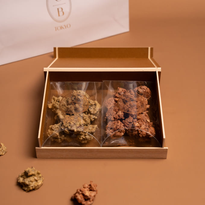カカオ栽培から手がけ、シンプルなレシピで作ったチョコレートをラングドシャでサンド。重厚感のある「ダーク」と優しい味わいの「ミルク」各6枚入り。