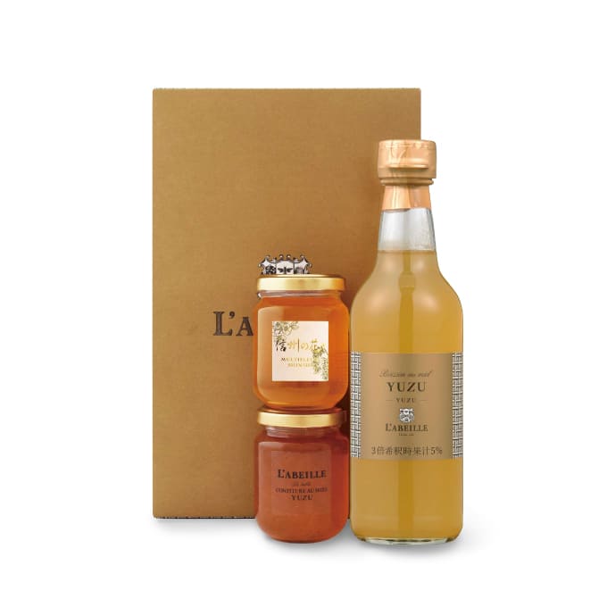 冬におすすめのはちみつ、季節限定のコンフィチュール、ドリンクをギフトボックスに詰め合わせました。冬のギフトにおすすめです。