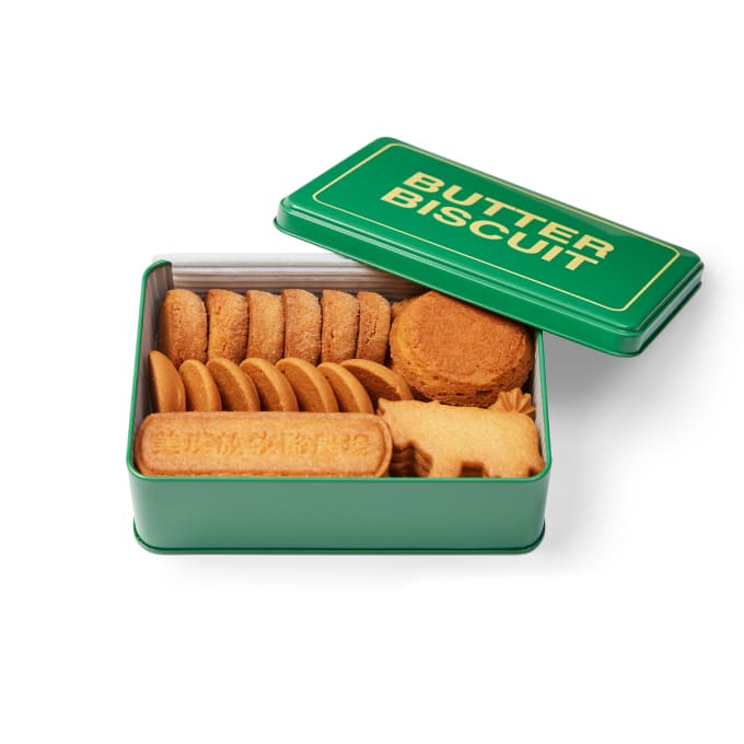 自家製バターと美瑛小麦で作った自慢のビスケットが缶の中にたっぷり。バターのミルク感と小麦の香ばしさが口いっぱいに広がる。