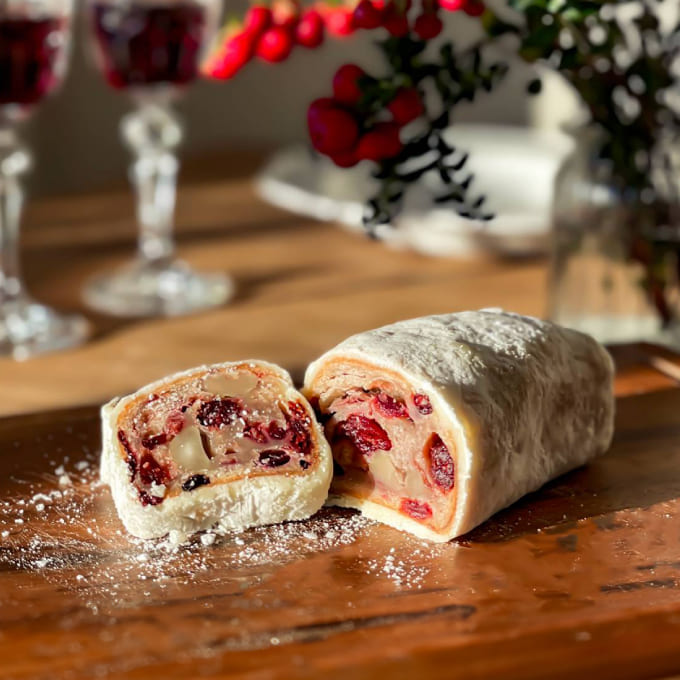 甘酸っぱい4種のフルーツと芳醇なヘーゼルナッツの組み合わせ。素材本来の甘味とジューシーさを活かし職人が手作業で焼き上げたオリジナルシュトーレン。