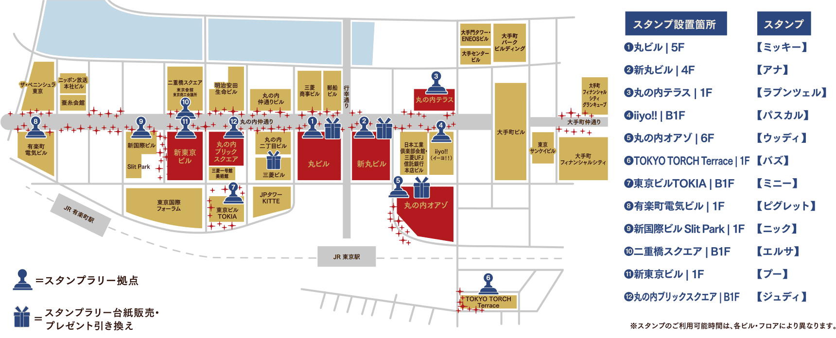 ※スタンプのご利用可能時間は、各ビル・フロアにより異なります。