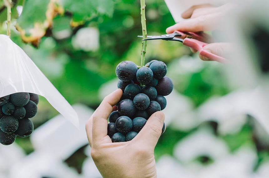 ワインの原料となるブドウ「巨峰」を実際に食べ、巨峰からできたワインを飲みながら、1粒のブドウからどうやってナチュラルワインが造られるのか?が学べるセミナーです。
