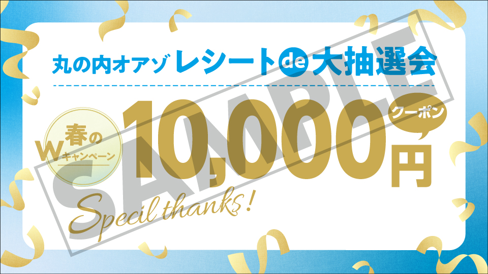 丸の内オアゾのお食事券や、最大1万円分のクーポンなど