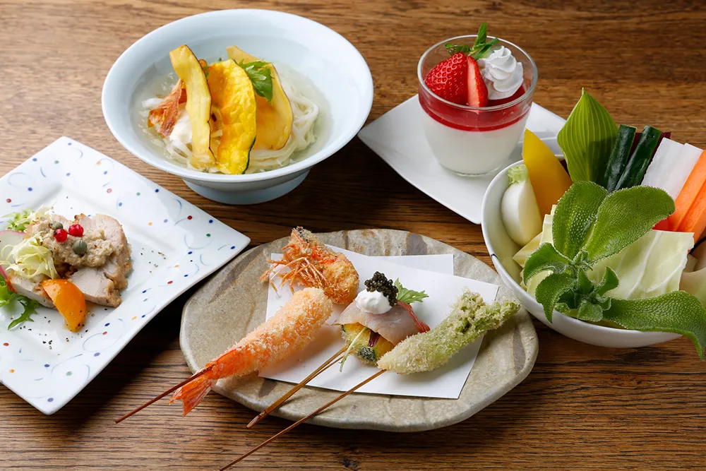 大人な印象がある天ぷらですが、子どもにとっても嬉しいご馳走。家族で一緒に、揚げたての “サクッ” “ふわっ”をお楽しみください。単品から定食まで幅広く、好みに合わせて注文できます。外国語メニューの用意もあり、店内はフラットで広め。ベビーカー・車椅子でもアクセスしやすいレイアウトです。