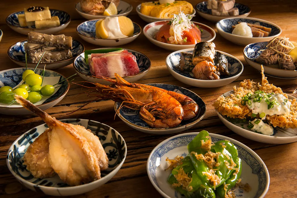 自社醸造のクラフトビールを常時10種ほど提供している「クラフトビール居酒屋」では、創作和食とともに美味しいビールが楽しめます。広々とした店内に加え、最大30名のプライベートスペースはチームの飲み会やイベントの打ち上げに最適。また、昼の11時から営業しているので、日中リラックスするのにもぴったりです。