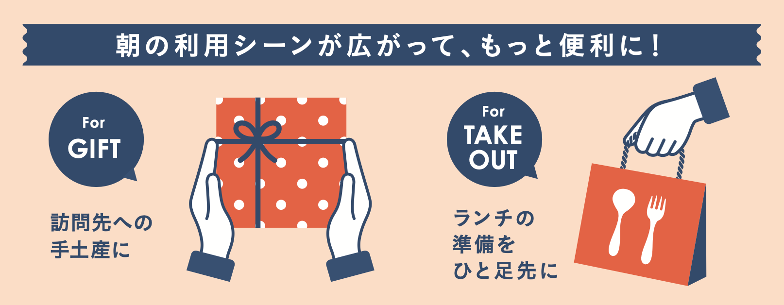 朝食やランチの準備、通勤前のお買い物など、より多くのお客さまのニーズにお応えします。