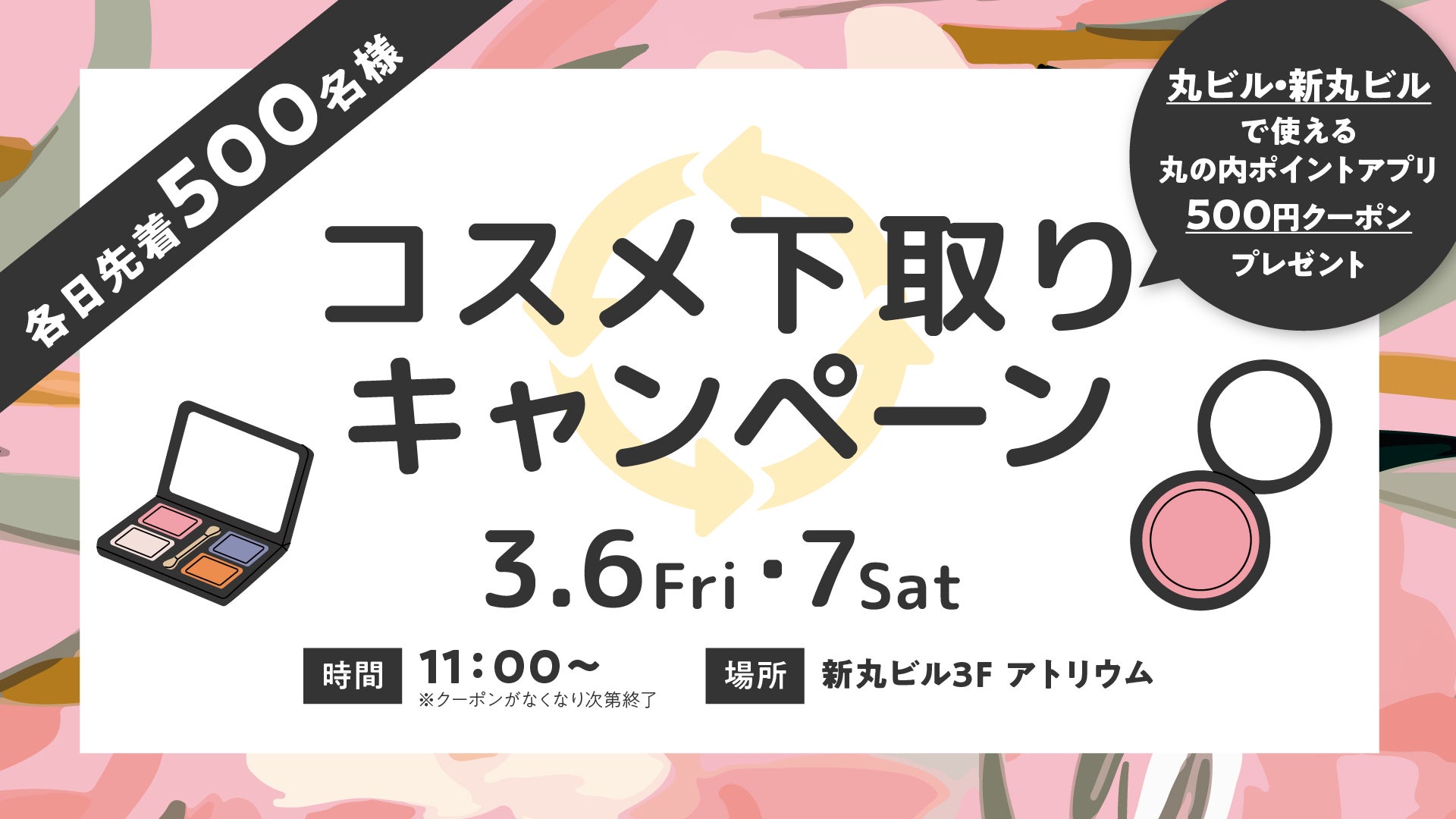ご不要になったコスメをお持ちいただくと、丸ビル・新丸ビルで使える500円アプリクーポンプレゼント!