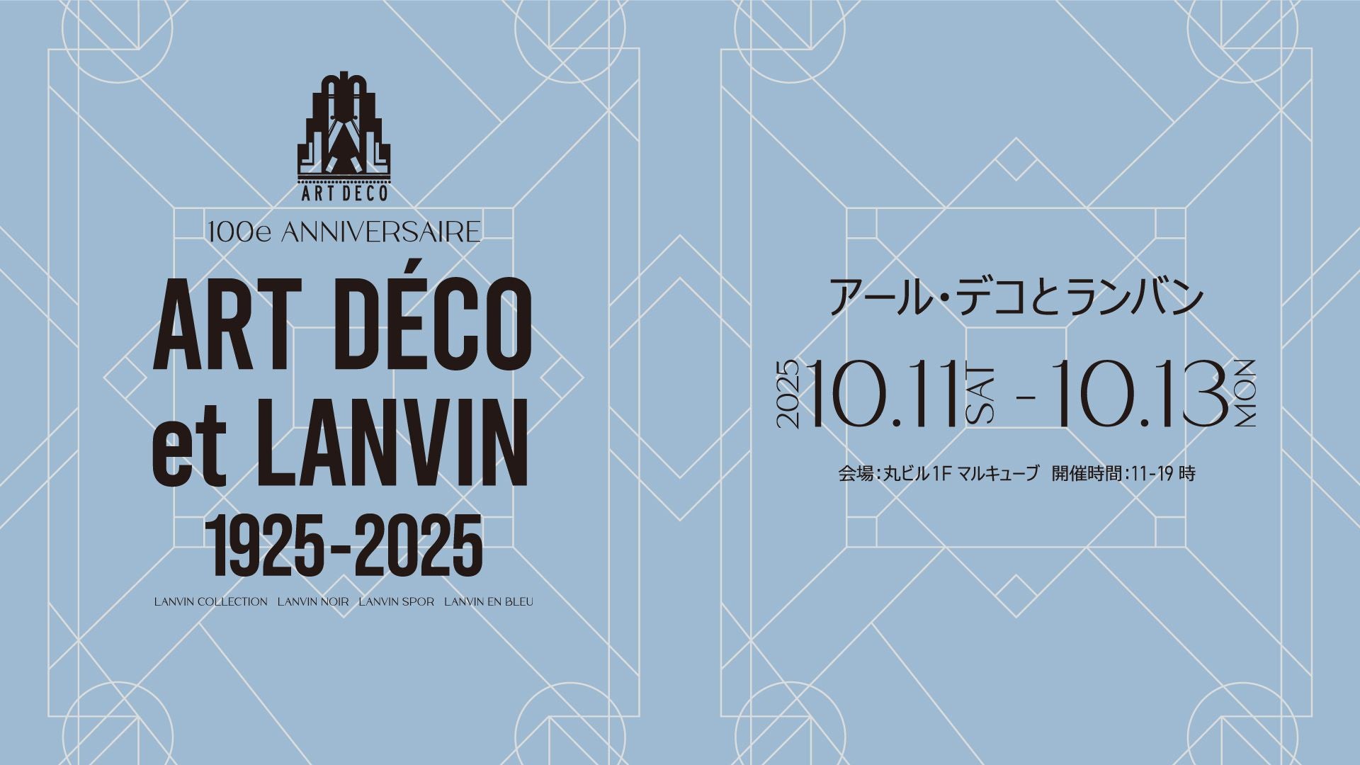 これを記念して「ART DÉCO et LANVIN」(アール・デコとランバン)を丸ビル1F マルキューブにて、10⽉11⽇(⼟)~10⽉13⽇(⽉・祝)まで開催いたします。