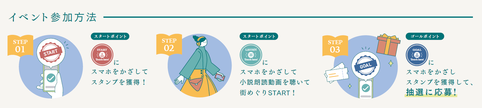 参加方法はとっても簡単。以下のSTEPに沿って、それぞれの物語をお楽しみください。