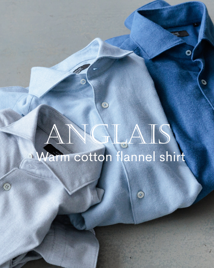 柔らかなコットンフランネルは、タテヨコの色選びから糸の太さ、ウエイト、起毛感に至る細部まで吟味して仕上げた《アングレー》オリジナルファブリックです。