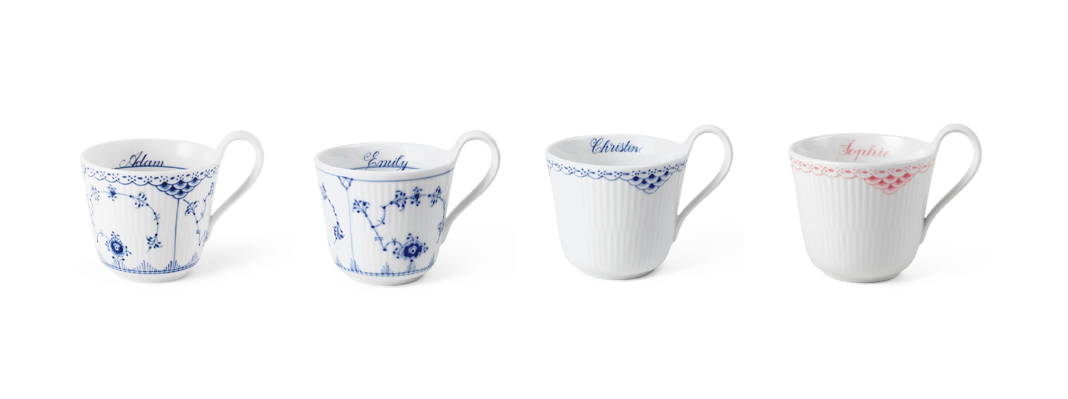 歴史あるポーセリンに、愛着の湧くパーソナルタッチを加えることができる特別なサービス「ロイヤル コペンハーゲン ビスポーク」。才能溢れるロイヤル コペンハーゲンのペインター達がカップの内側に一筆一筆、丁寧にお名前を描き入れる完全オーダーメイドで、世界にひとつだけの特別なピースをお届けします。