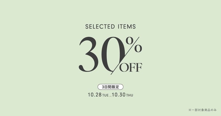 10月28日(火) ~ 10月30日(木)の3日間限定で対象商品が30%OFFに