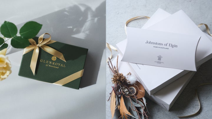 12月25日(木)までの期間限定で、〈ジョンストンズ オブ エルガン〉製品および〈グレンロイヤル〉の財布・小物をお買い上げの方に、通常有料となる純正ギフトボックスでのラッピングを無料でご提供いたします。