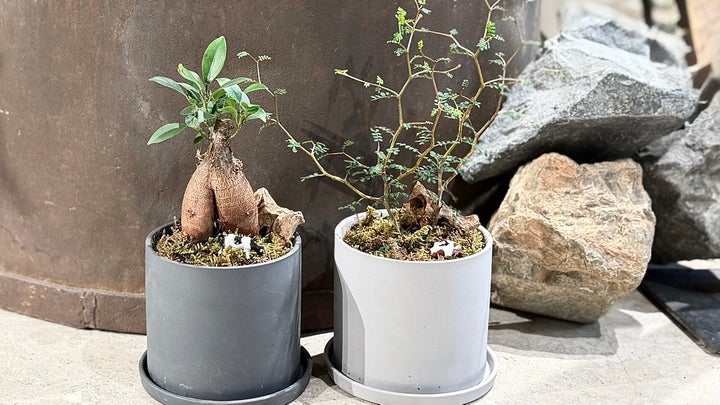 基本の観葉植物の植え替えを体験できるワークショップです。仕上げにフィギュアと石をレイアウトし、箱庭風のひと鉢に。
