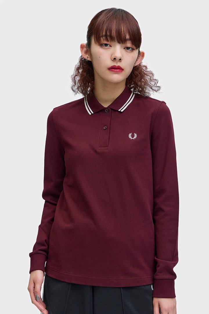 衿と袖にティップラインが入ったウィメンズの長袖ポロシャツ。G3600と同じクラシックなボックスシルエットで仕上げています。