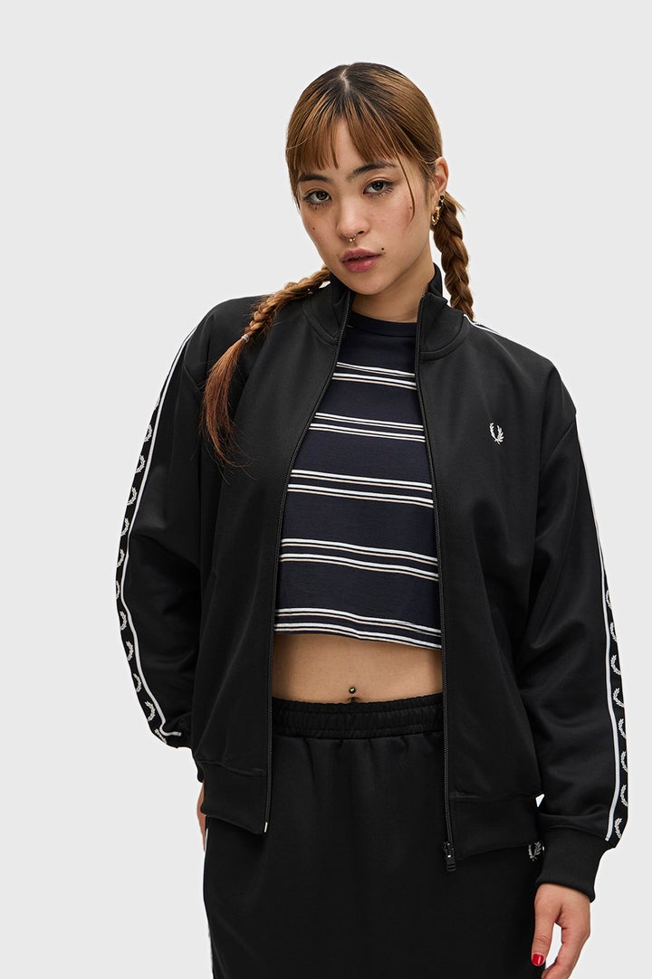 クラシックトリコットを使用した新しいウィメンズのトラックジャケット。深いアームホールとドロップショルダーが特徴で、スリーブにあしらったトラックテープがデザインのポイントです。腰回りのリブは収縮性があり、ブラウジングのスタイリングも楽しむことができます。セットアップ可能なトラックスカートのご用意もございます。