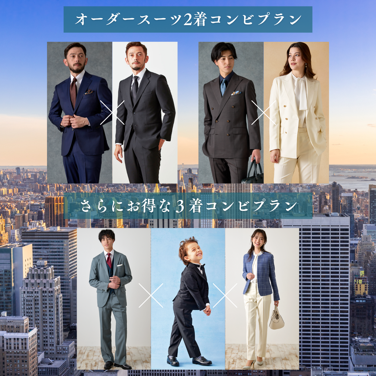 ビジネス × プライベート、結婚式 × セレモニーなど、自由な組み合わせで2着まとめてお得。