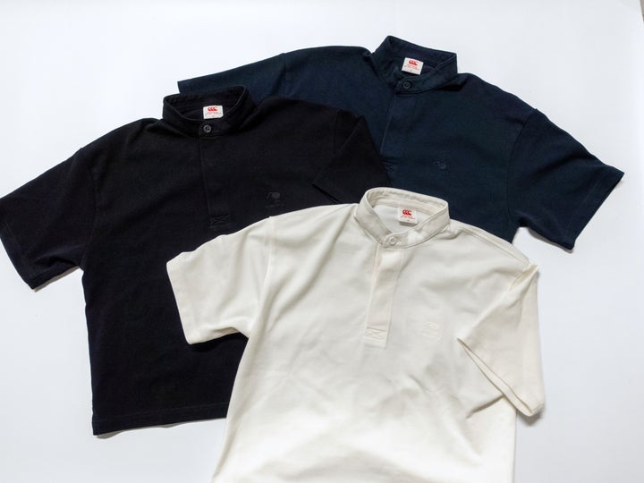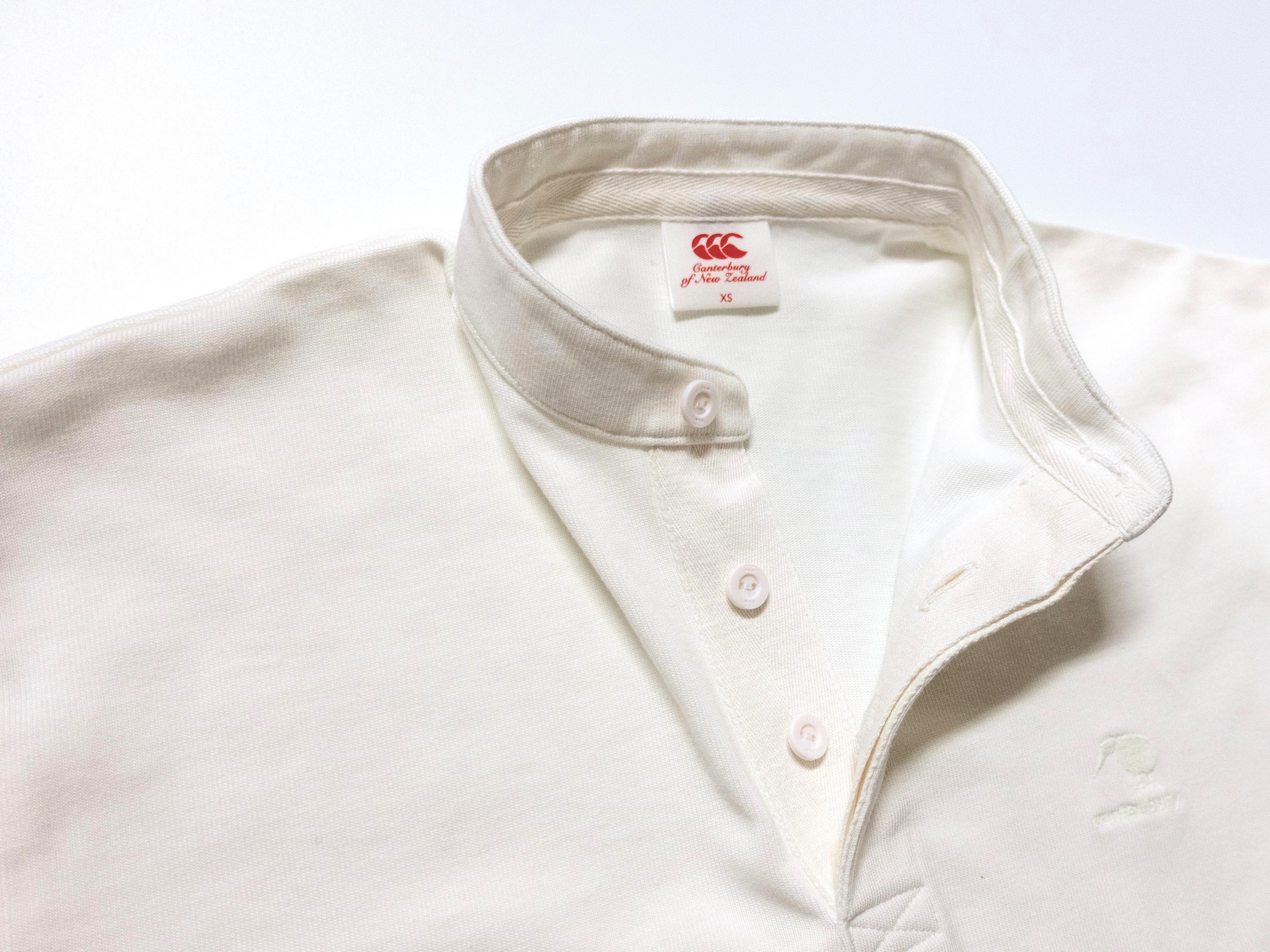 ラグビー由来のディティールを残しながら、襟元をすっきりと見せることで、より軽やかな印象に仕上げました。