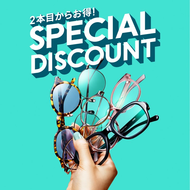 JINS目前正在进行促销活动,购买多件商品,第二副眼镜或太阳镜可享10%折扣。(*)