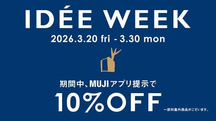 3月20日(周五/节假日)期间3月30日Mon,出示MUJI app即可享受指定家具、灯具及杂货特价优惠。*部分商品不参与活动。