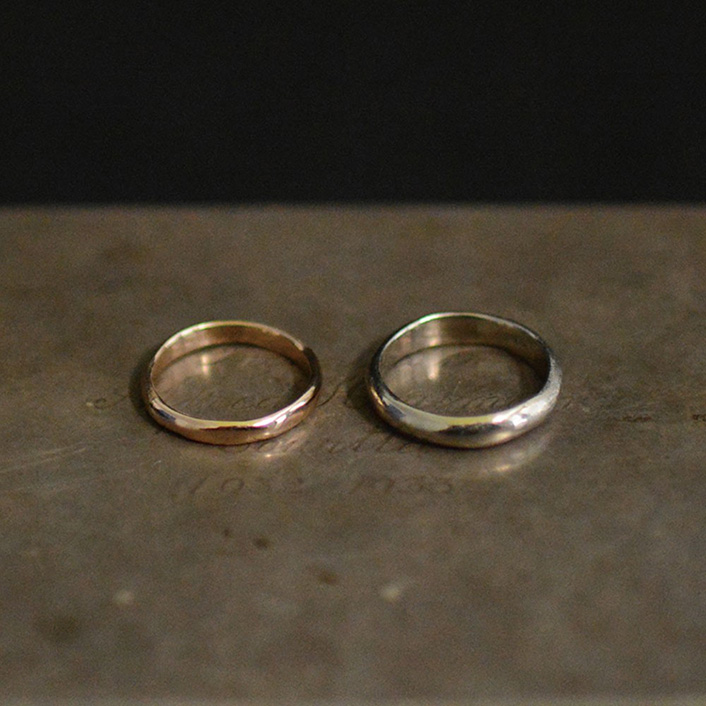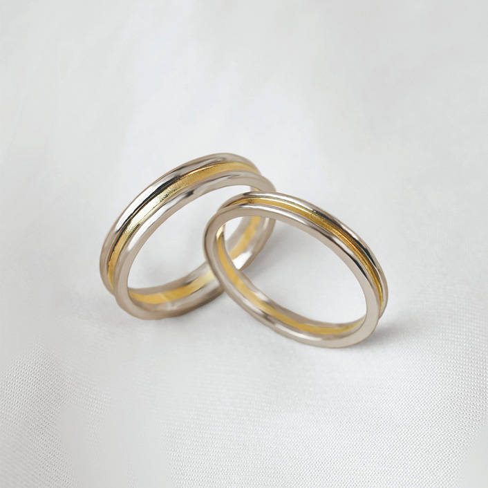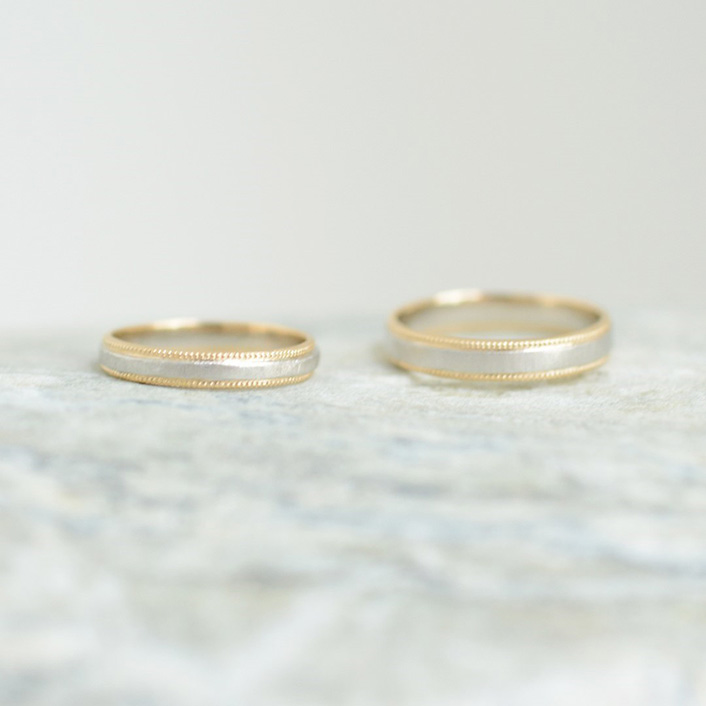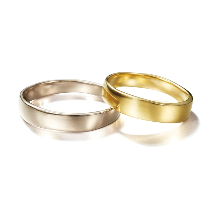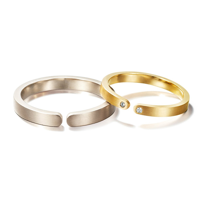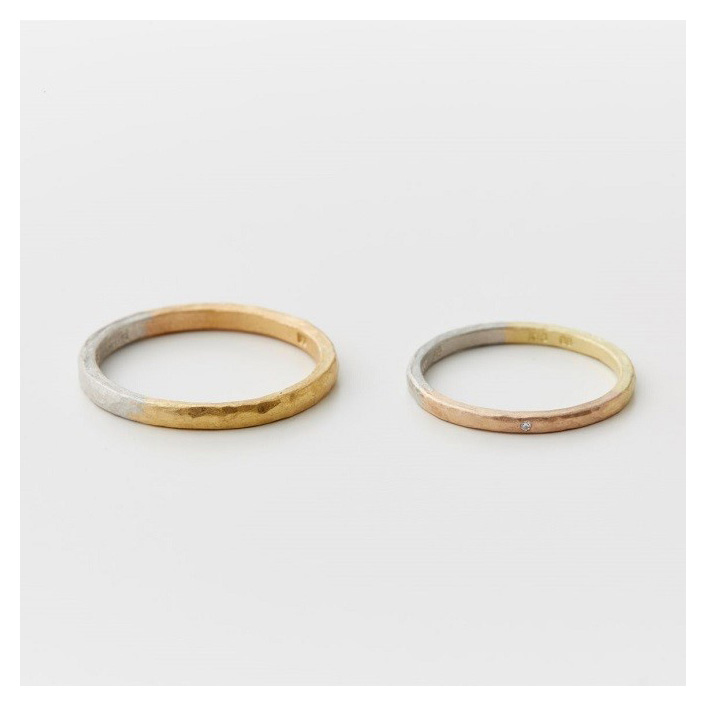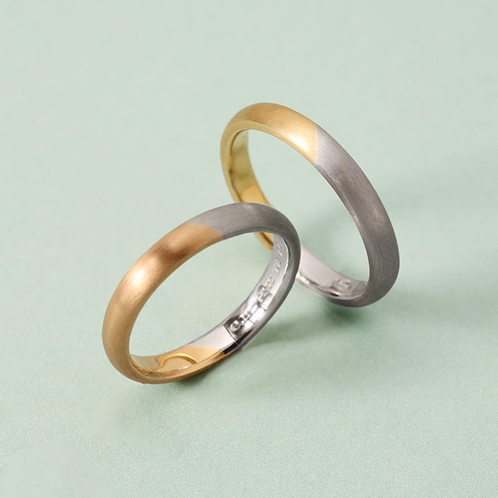 白金和黃金的組合戒指。肌膚觸感良好的半啞光質地,推薦給不習慣戴戒指的人。