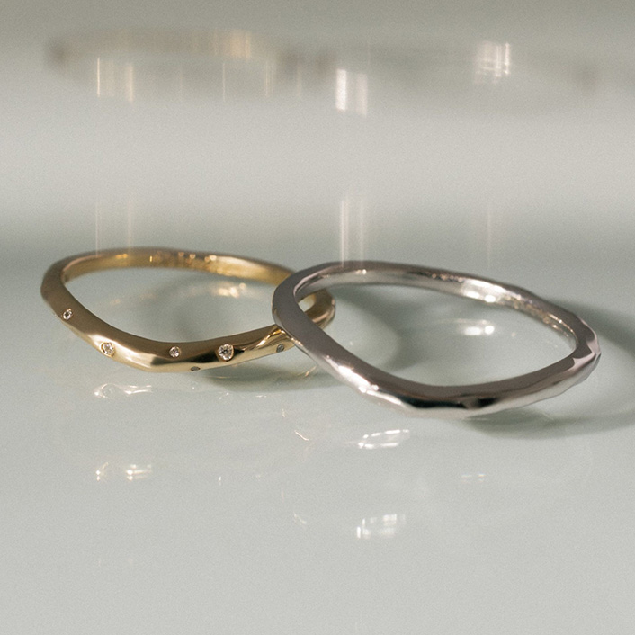 我們精選了一系列與日本傳統婚禮產業中常見的簡約鉑金婚禮戒指截然不同的婚戒。
