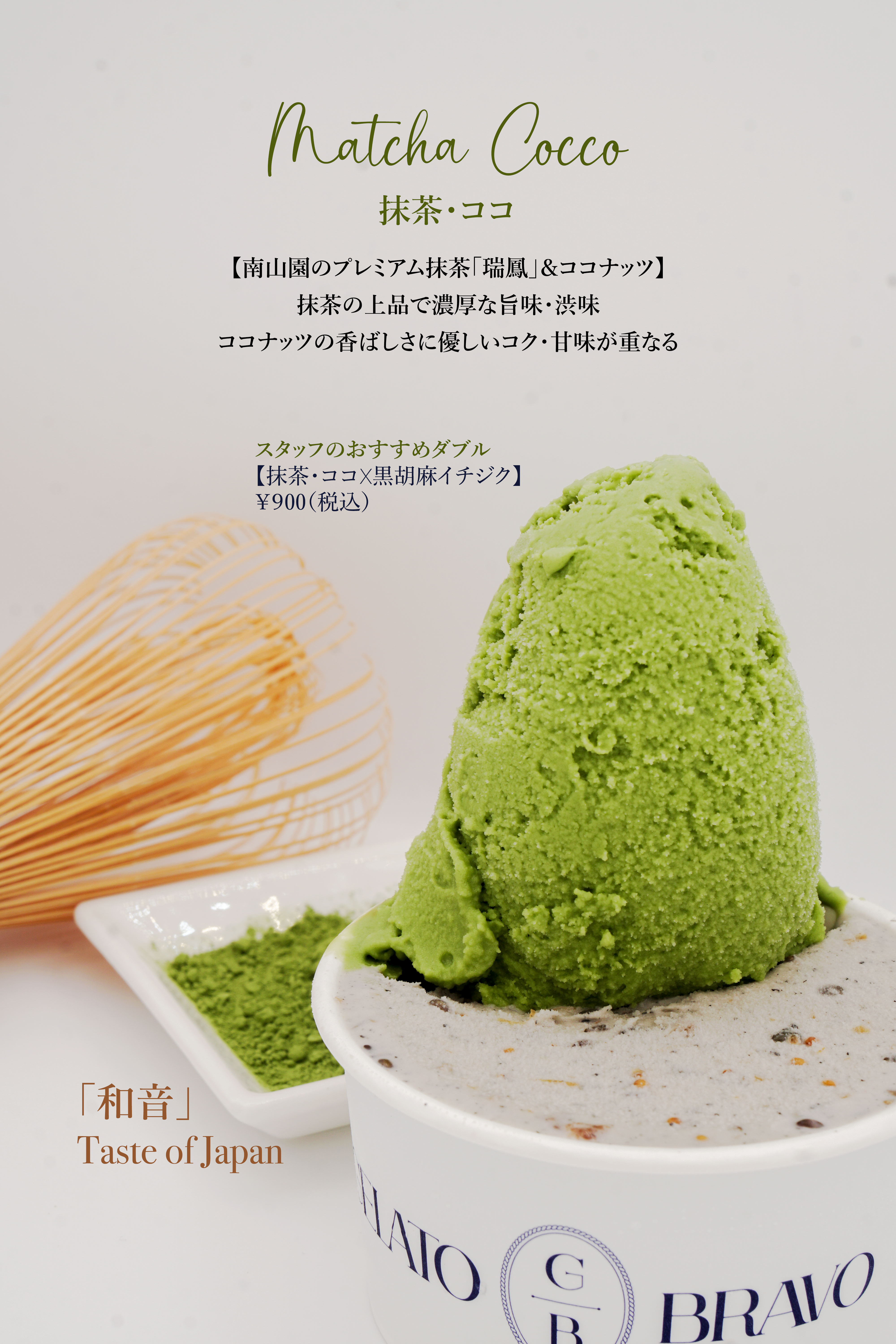 抹茶的鮮美濃鬱和澀味與椰子的芬芳香氣,以及柔和的醇厚和甜味完美融合。